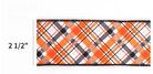 2 1/2" Wired Ribbon | "Halloween Plaid" White/Orange/Black | 10 Yard Roll