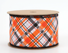 Spooktacular Halloween Plaid: 2 1/2" Wired Ribbon showcases a bewitching Halloween plaid design in a striking combination of orange and black.